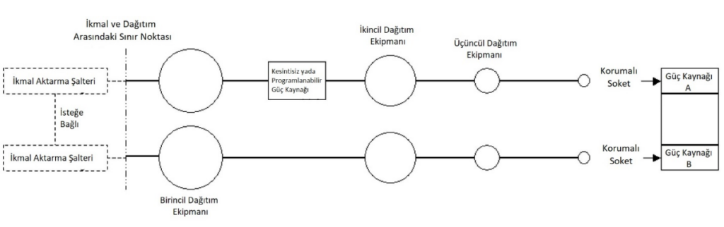 Şekil 9: Yedekli tek yollu güç dağıtım sistemi örneği (Sınıf 2)