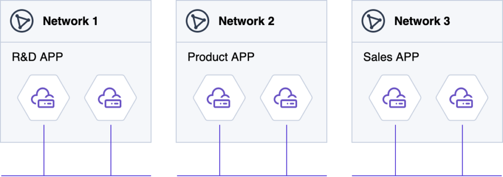 Güvenlik nedenleriyle, devlet ve kurumsal BT dağıtım mimarisi genellikle BT iş türüne göre dahili ağ izolasyonu gerektirir. Örneğin, Ar-Ge sistemleri 1. ağa, ürün sistemleri 2. ağa ve satış departmanı sistemleri 3. ağa dağıtılır. EasyStack bulut temel ağ hizmetleri, dahili iş türlerine göre farklı ağları esnek bir şekilde yapılandırabilir ve ağlar arasında mantıksal izolasyon sağlayabilir.