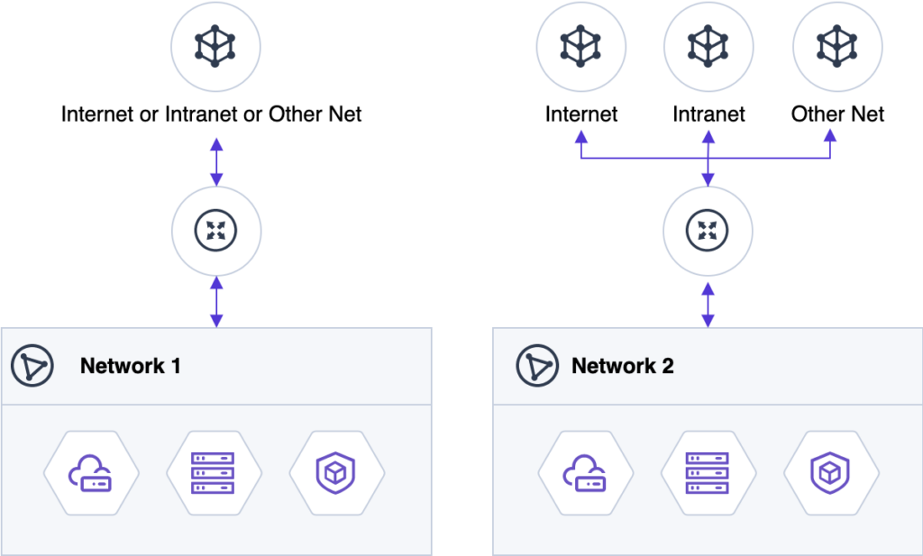 Kurumsal kullanıcılar genellikle genel ağ, ofis ağı ve özel hat ağı gibi çeşitli ağlara sahiptir. Bulut platformundaki bilgi işlem kaynakları için çeşitli ağ erişim gereksinimleri olacaktır. Örneğin, bazı bulut sunucuları yalnızca genel ağa, ofis ağına ve özel hat ağına erişebilir. Örneğin, bazı bulut sunucuları aynı anda bu üç ağdan ikisine veya üçüne birden erişebilir. İsteğe bağlı harici ağ erişimi, tarafından sağlanan çoklu harici ağlar aracılığıyla kolayca sağlanabilir.